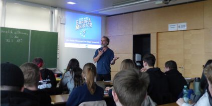 Es geht an diesem 14. November 2025 im Raum B 326 in den BbS ABi um den Europameister, aber nicht im Sport, sondern im Wissen über Europa und – um ganz genau zu sein – über die Europäische Union. Denn die ist für die Jugendlichen tatsächlich „ein weites Feld“ und ziemlich fern. Im spielerischen Umgang – mit einem Quiz – stellen sich zuerst die 20 Rohrleitungsbauer (BRL.25-A) den Fragen zur EU und 90 Minuten später die 18 Chemikanten (BCK.25-A). Eine Frage lautet zum Beispiel: „Die EU und ihre Mitgliedstaaten sind zusammen der größte…?“ Drei Antwortmöglichkeiten gibt es: Geber für Entwicklungshilfe, Verursacher von Schadstoffemissionen, Produzent von Mais. Mit Buzzern (TED-Abstimmungsgeräten) wird …