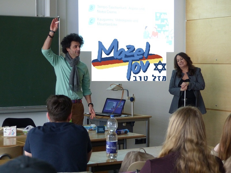 Sie erzählen spielerisch Geschichten über Religion und Vorurteile. Sie verknüpfen historische Fakten mit dem Heute und Jetzt. Was ist eigentlich Antisemitismus und woher kommt der Hass gegen Juden? Sie klären auf, weil es für sie eine Herzensangelegenheit ist: Nina Coenen und Sami Alkomi haben das Quizformat „Mazel Tov“ entwickelt. Sie sind bundesweit unterwegs und am 25. März 2026 sind sie in der Klasse BCK.24-C (Chemikanten) zu Gast und kurz danach in der BERZ.25-B (Erzieher). Rund um die Quizfragen geben sie den Schülern die Infos, die diese brauchen, um die Fragen zu beantworten. Dabei nutzen sie eine Performance, die Spaß macht und die Schüler nicht nur unterhält, sondern auch zum Lachen …
