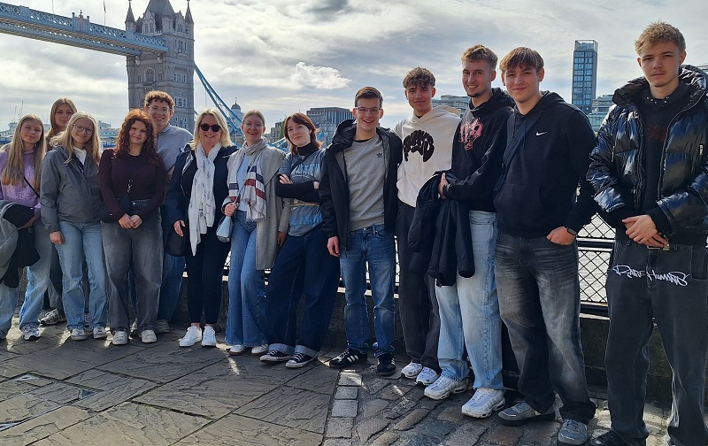 Vom 21. bis 26. September 2025 waren wir auf Sprachreise in London. Sonntag ging es mit zwei Reisebussen 18 Stunden in Richtung England. Mit dabei waren Schüler und Schülerinnen der 12. Klassen der Fachoberschulen, der Berufsfachschule Kinderpflege, angehende Erzieher und Erzieherinnen und fünf Lehrkräfte. Montagmittag kamen wir am Hostel „The Generator“ an und erkundeten zunächst eigenständig die Stadt. Am nächsten Tag teilten wir uns in drei Gruppen auf und entdeckten per Bus, Boot oder zu Fuß die bekannten Sehenswürdigkeiten Londons. Dienstagabend und Mittwoch gingen wir shoppen, besuchten Streetfoodmärkte oder „The Dungeon“. Einige nutzten die Chance, ein Spiel des englischen FA-Cups zu erleben und andere betätigten sich sportlich beim Basketball mit Londonern. Am Donnerstagvormittag erhielten wir eine Führung durch das Shakespeare`s Globe Theater und danach ging es wieder nach Hause. Während dieser vier Tage konnten wir zahlreiche schöne Eindrücke einer für viele bis dahin noch unbekannten Metropole sammeln und dabei unsere Englischkenntnisse praktisch testen und verbessern.