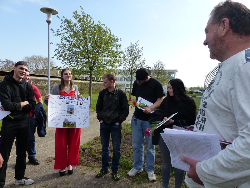 „Sie waren der geschillteste Lehrer!“, Übergabe eines Plakats an Volker Keck, Klassenlehrer der Berufskraftfahrer.