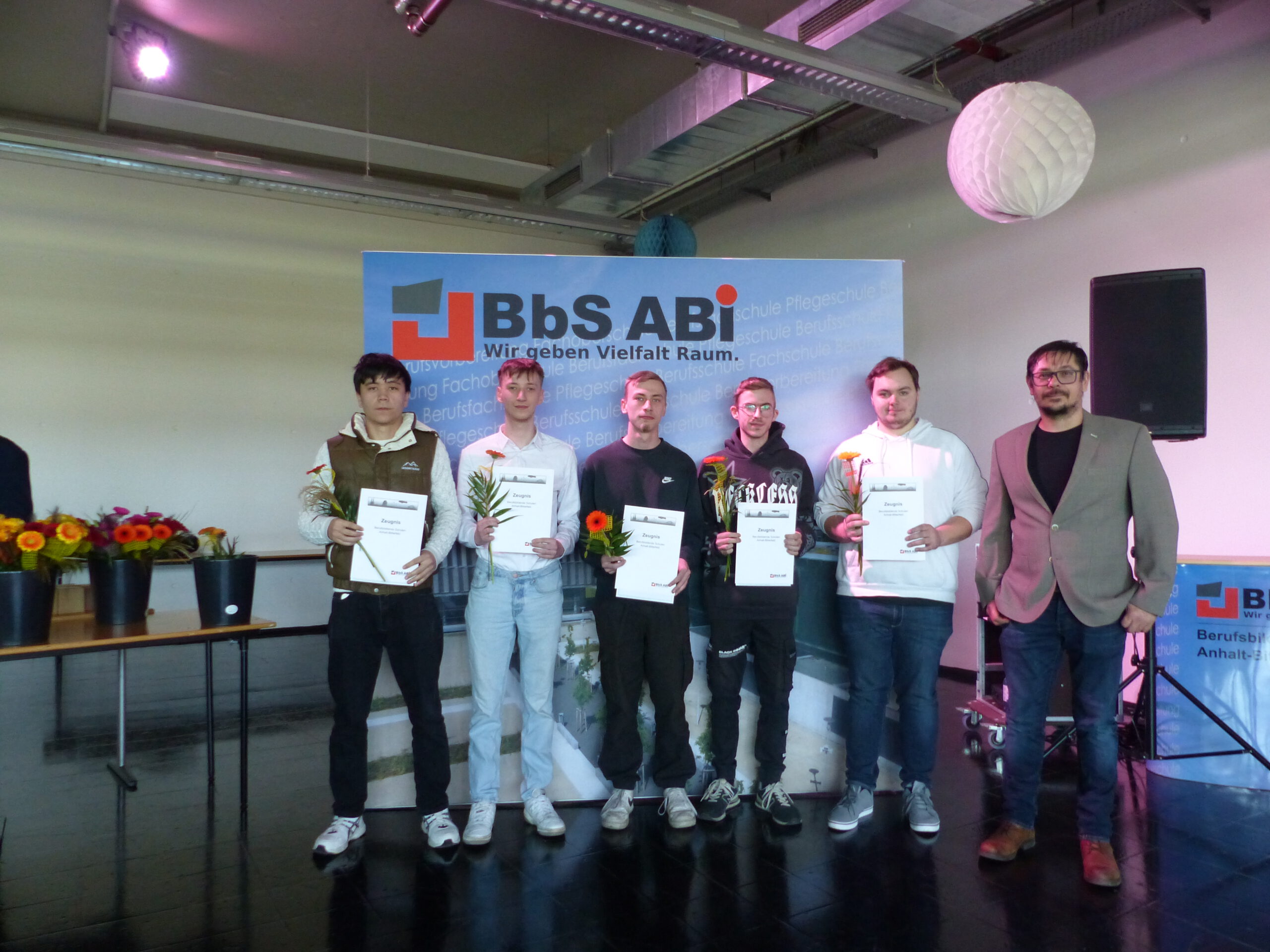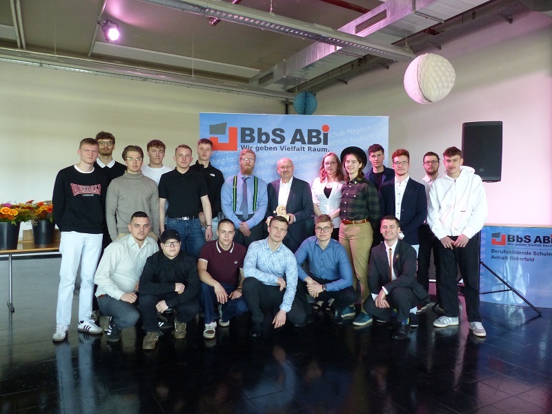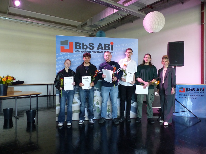 „Here comes the sun“, wird später eine der leisen Hintergrundmusiken bei der Zeugnisausgabe am 17. April 2026 in der Aula der BbS ABi in Bitterfeld sein, aber erstmal heißt es: „Viel Glück und alles Gute auf Ihrem Lebensweg“, von Schulleiterin Astrid Zosgornik an die Schüler. Sie bedankt sich bei den Klassenlehrern von insgesamt 19 Klassen, die verabschiedet werden sowie dem stellvertretenden Schulleiter, Teamleitern und Koordinatoren, die die Feier organisierten. 224 Schüler und Schülerinnen erhalten dann feierlich ihre Abschlusszeugnisse. Viele haben außerdem noch einen höheren Schulabschluss erreicht. Im Team Technik ist es jeder Fünfte: „20 von 96 Schülern“, sagt Martin Birnbaum, Teamleiter Technik.
